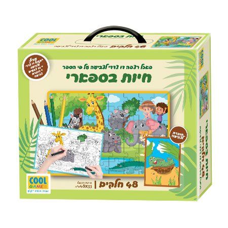 לפרטים נוספיםפאזל דו צדדי לצביעה וחוברת צביעה - חיות בספארי 48 חלקים