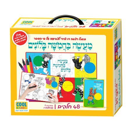 לפרטים נוספיםפאזל דו צדדי לצביעה וחוברת צביעה - מעשה בחמישה בלונים 48 חלקים